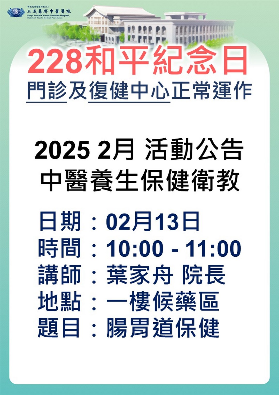 2月中醫養生保健衛教與228和平紀念日服務公告